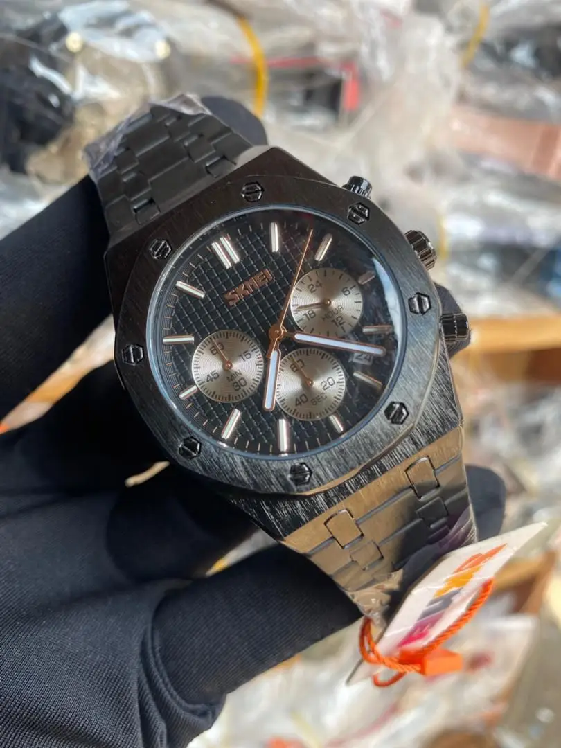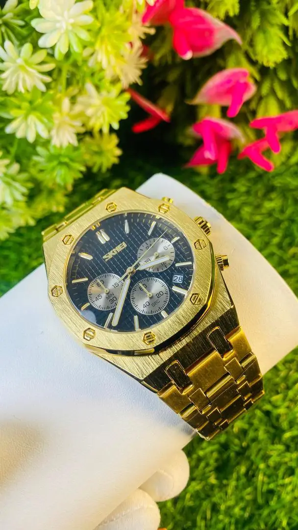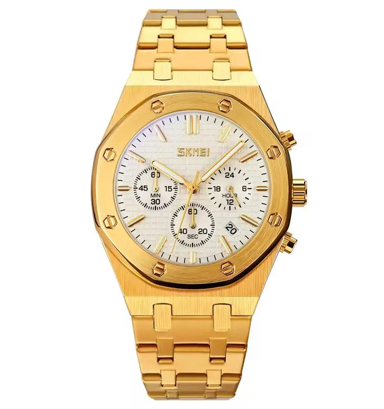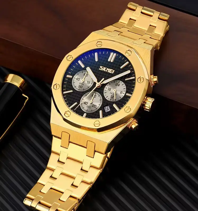 This Skmei 9296 Luxury Gold Quartz Watch for men features a stainless steel case, 3ATM water resistance, and an elegant square dial design with analog display. Equipped with reliable quartz movement and a durable rubber band, it ensures precision and comfort. The watch is CE certified, ensuring compliance with EU safety standards and providing market access assurance for buyers.